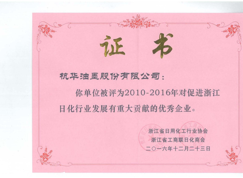 2010-2016年對促進浙江日化行業(yè)發(fā)展有重大貢獻的優(yōu)秀企業(yè)