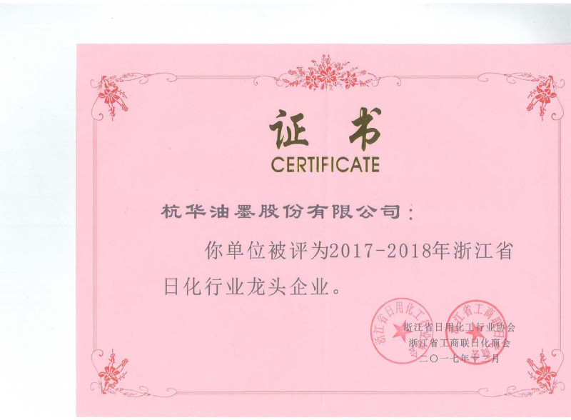 2017-2018年浙江省日化行業(yè)龍頭企業(yè)