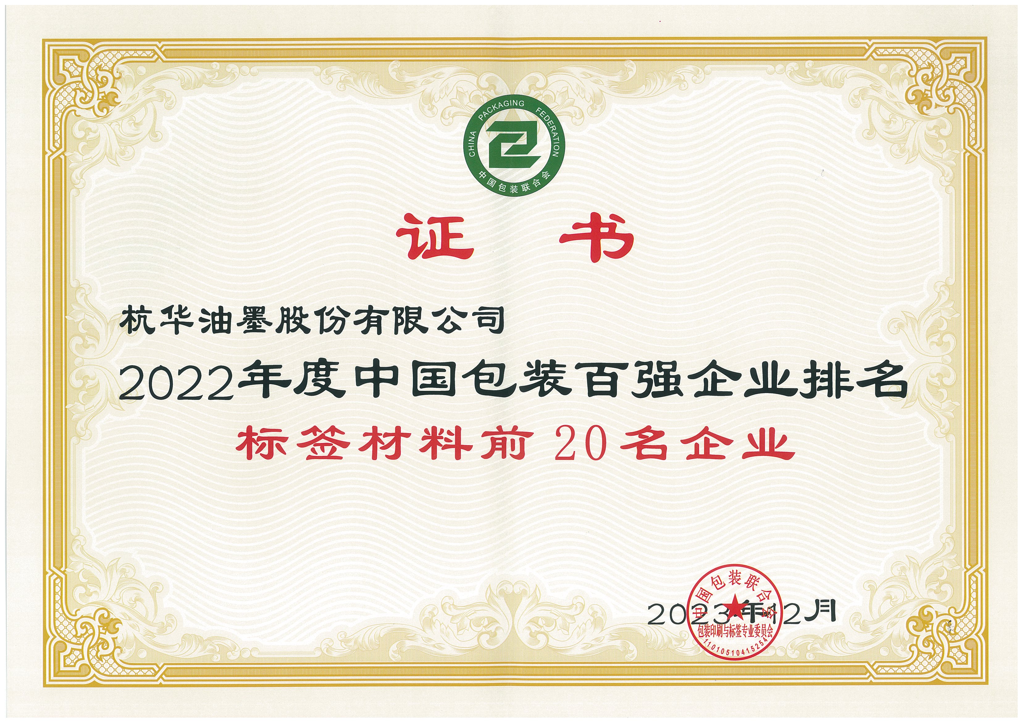 2022年度中國包裝百強企業(yè)排名標簽材料前20名企業(yè)
